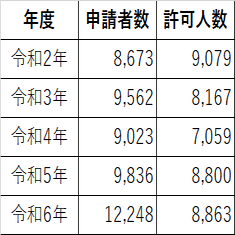 そのため、申請件数と許可件数を単純に比較しても、同一年度の結果として許可率を計算することはできません。